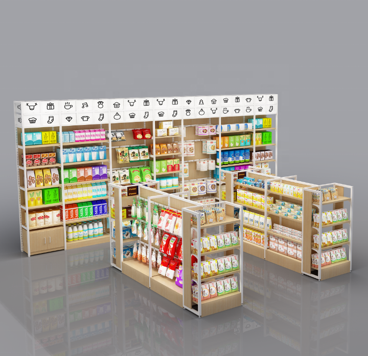 Metal Wood Grocery Store Shelf Retail Convenience Store Rack and Stand Supermarket Shelf